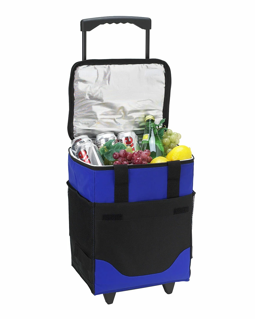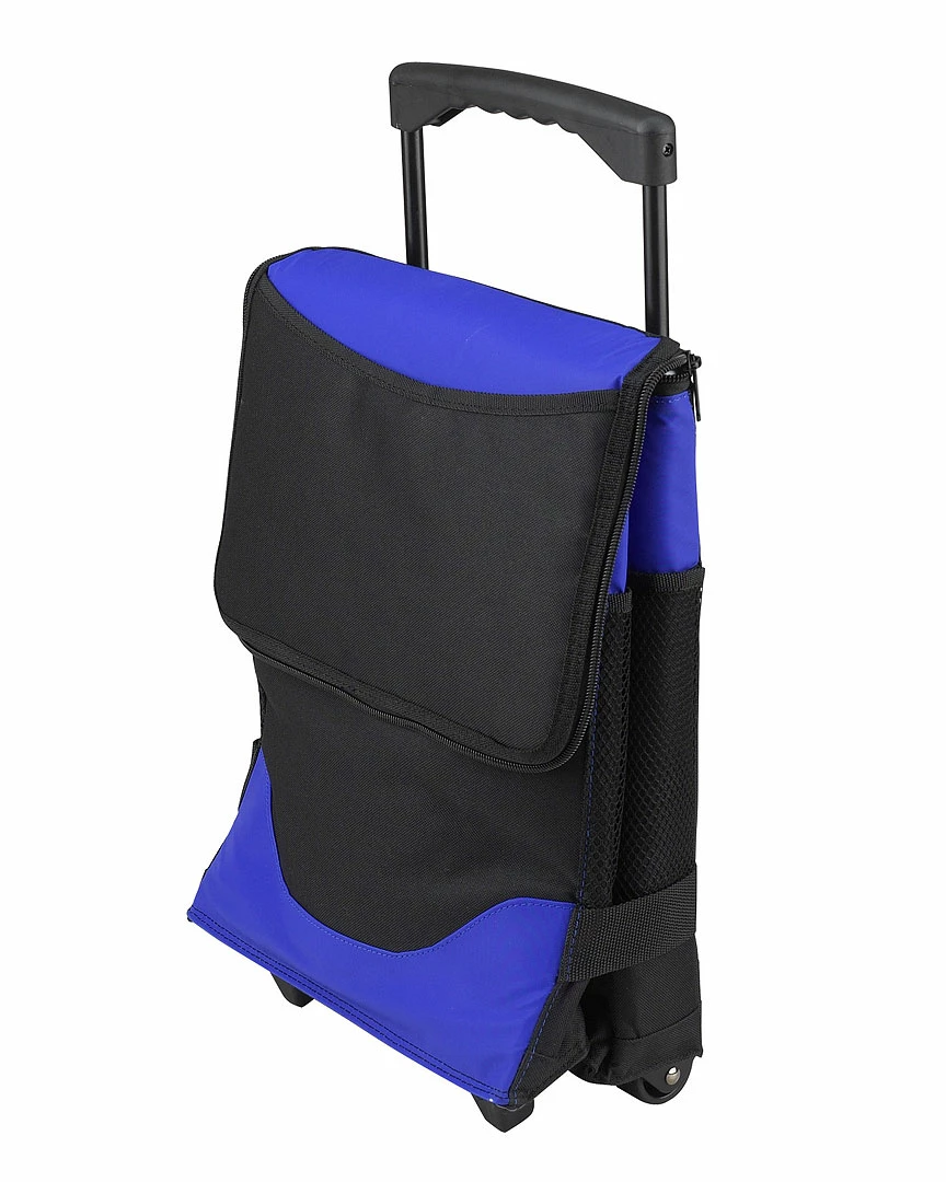 - Royal blue 32-can collapsible rolling cooler with telescopic steel handle with durable wheels