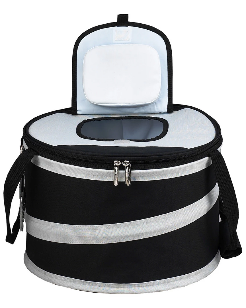 - The top zips fully open to pack and has a pop top in the lid for easy access to beverages