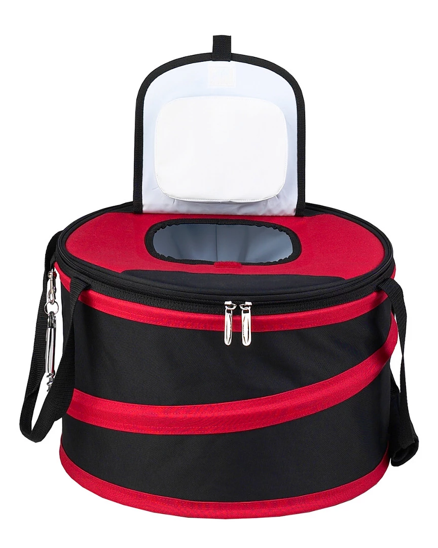 - Top zips fully open to pack and has a pop top in the lid for easy access to beverages