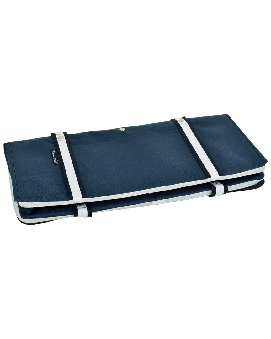 - Constructed with a sewn in wire frame, hard base and inserts to add rigidity, zippered lid, padded handle grip and shoulder strap, folds flat for storage