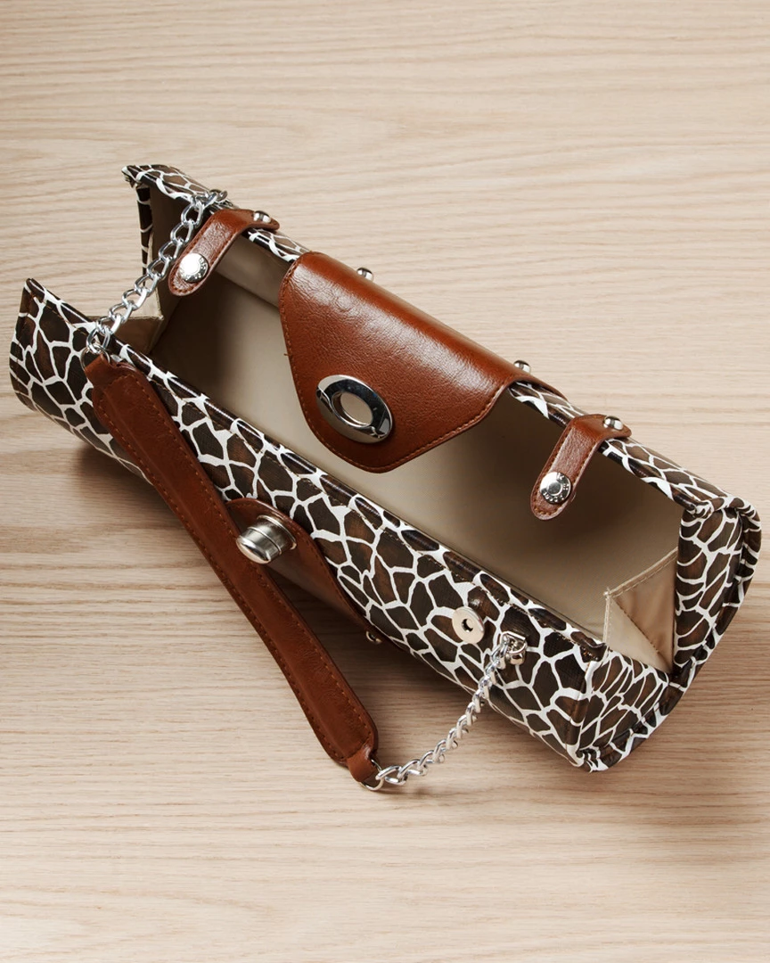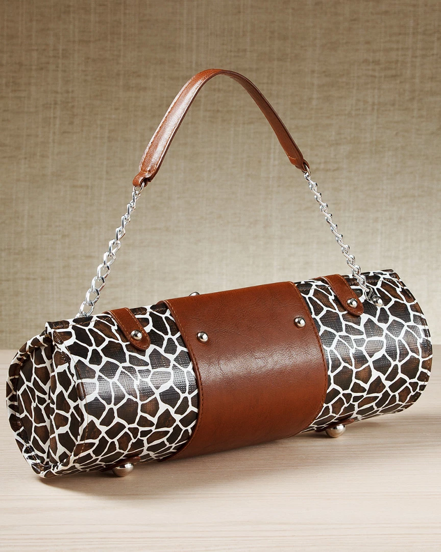 - One-of-a-kind high quality wine carrier with a giraffe pattern that doubles as a clutch or evening cocktail purse