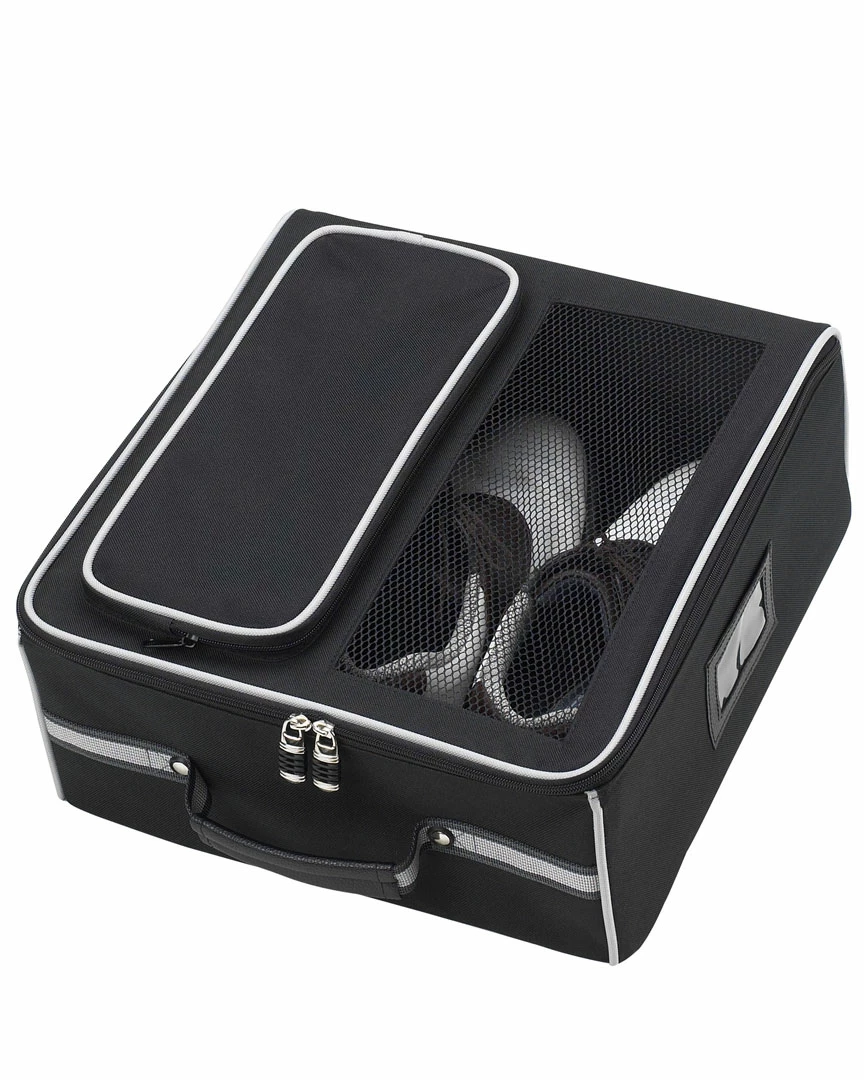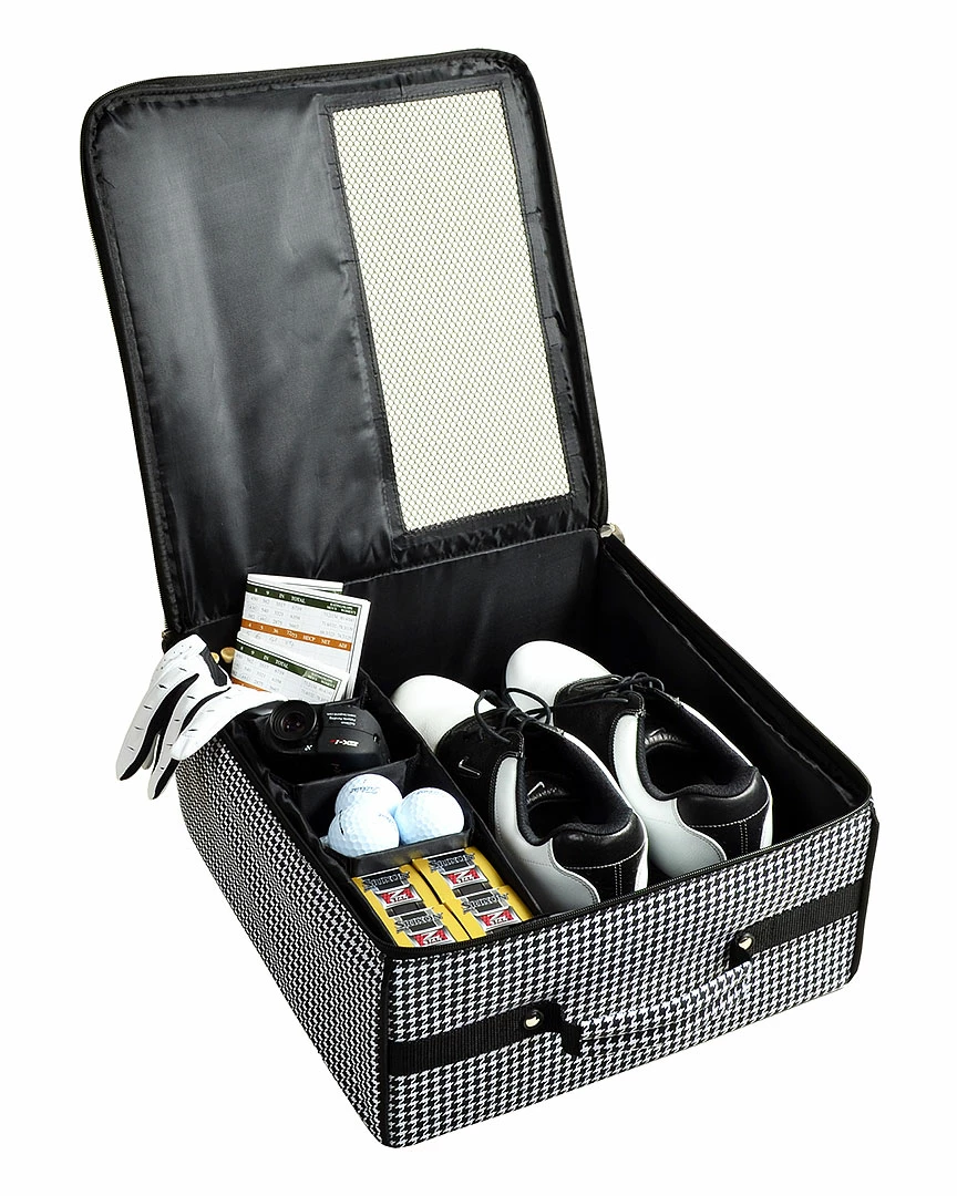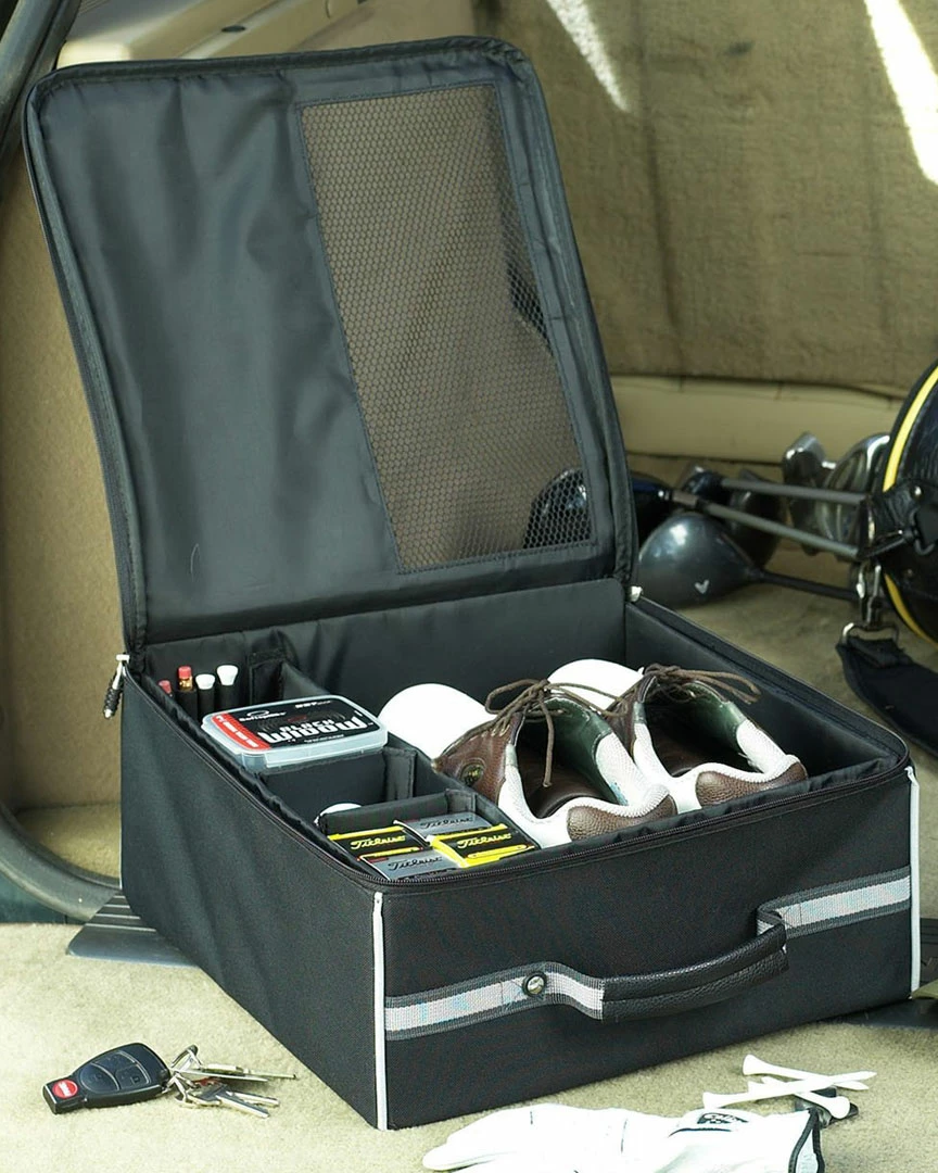 - Golf trunk organizer with ventilated area over the shoe compartment