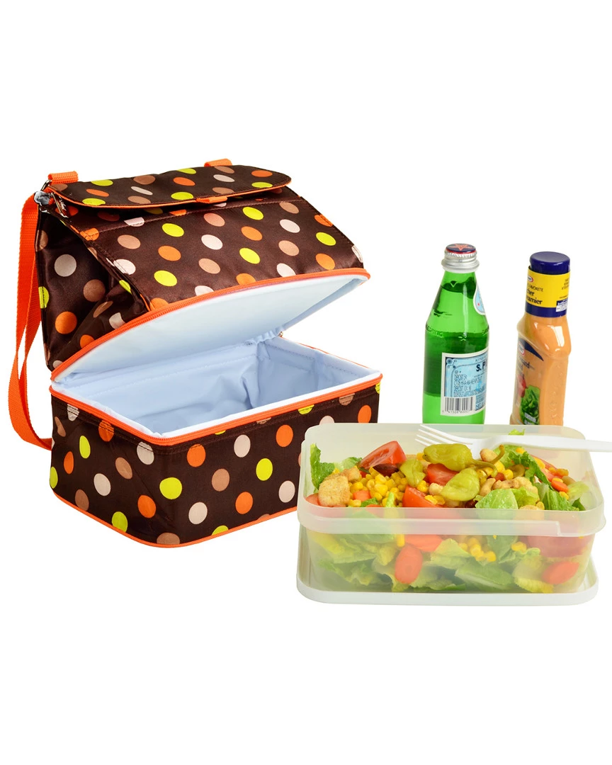 - Roomy lunch cooler with two separate insulated compartments adjustable shoulder strap and food container