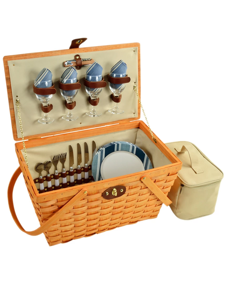 Outlet βοΈ Picnic At Ascot Settler Aegean Print Settler Picnic Basket For Four Home Outdoor Decor & Accessories π