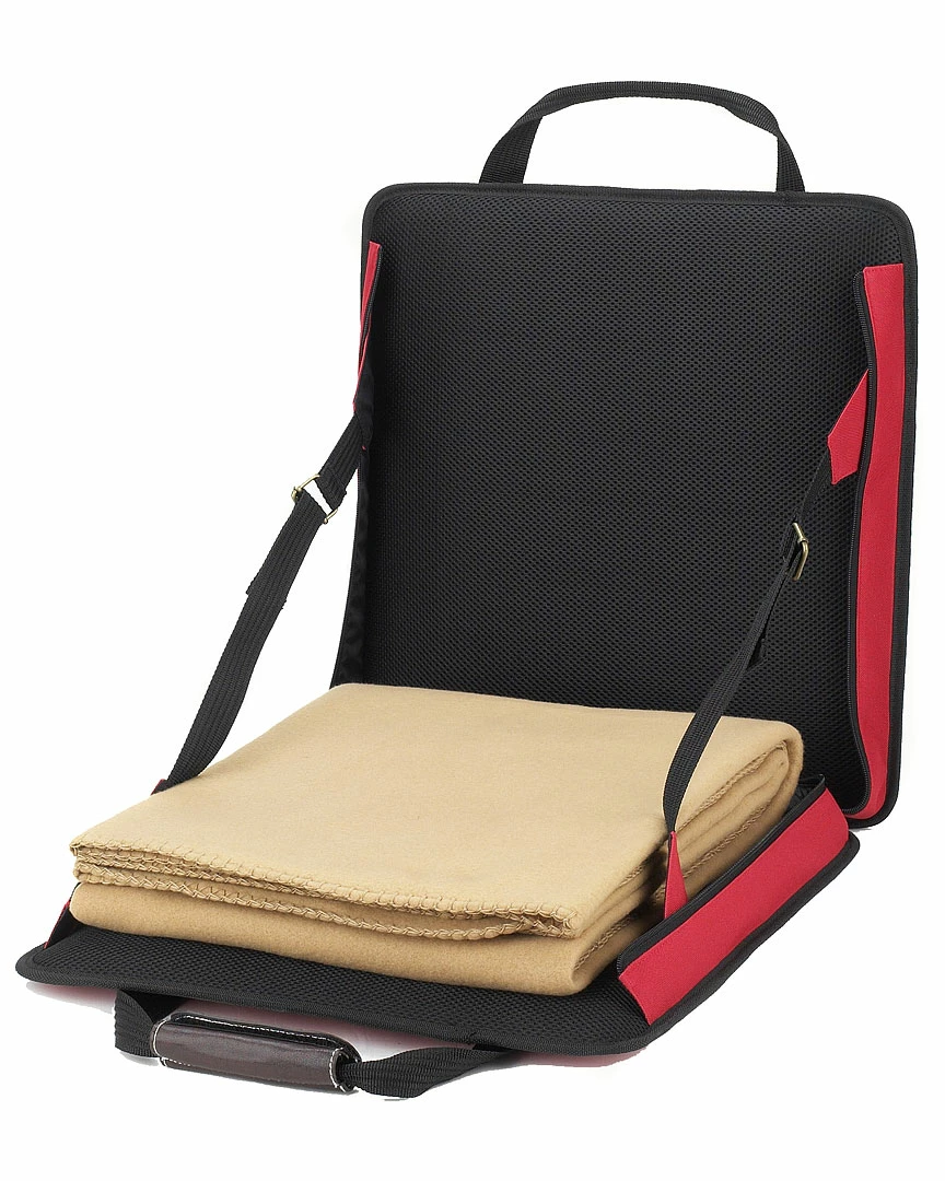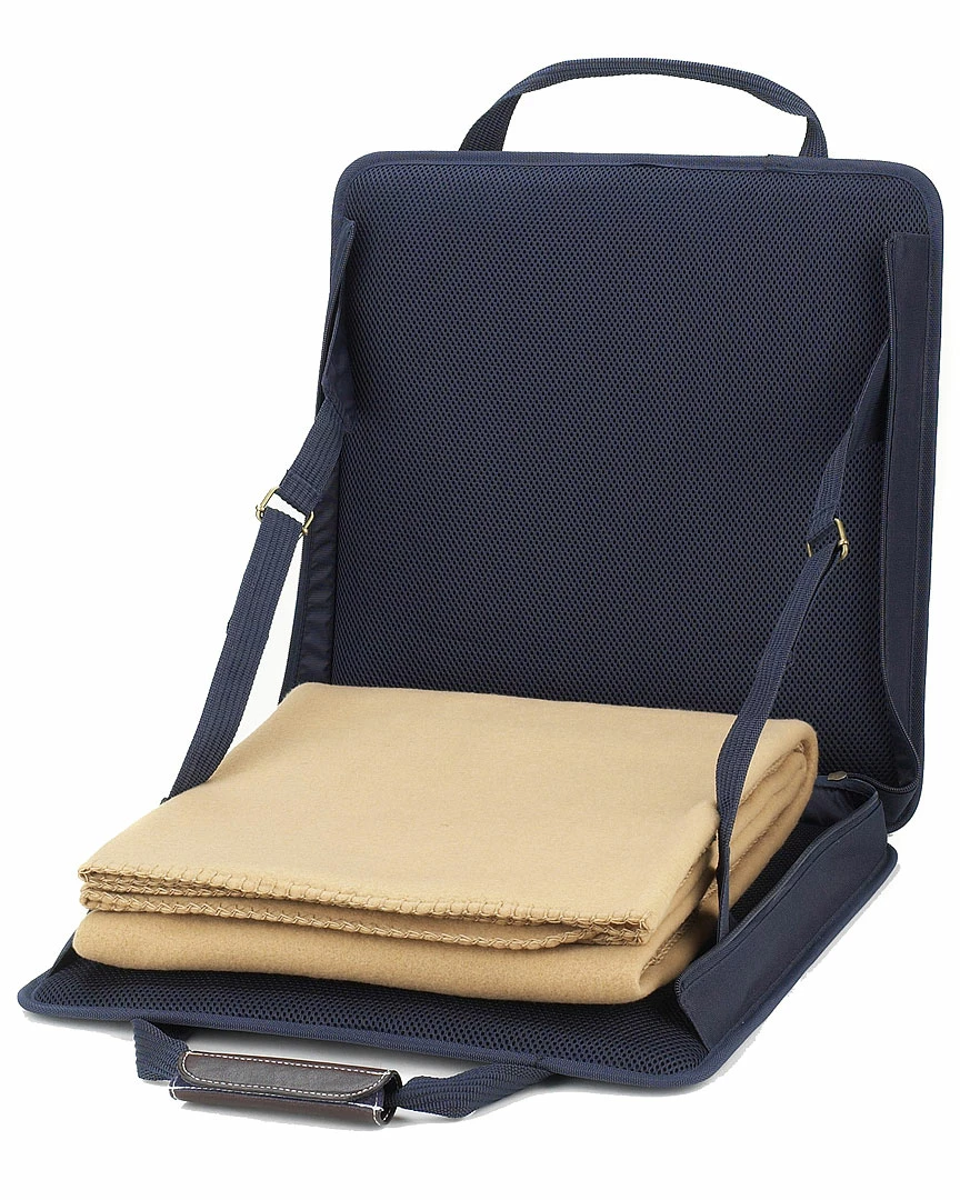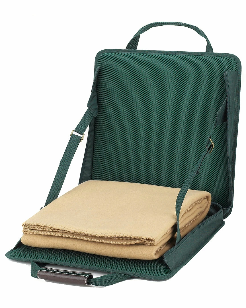- Padded stadium seat with tan blanket